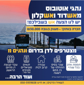 מרוץ נתנאל באשקלון: ביום שישי, 21.3.25 בין השעות 05:00-10:00, יחולו שינויים במסלולי קווי האוטובוס העירוניים 5,7,8,12,95,18,3,א6 בשל סגירה לתנועה את רחובות יפה נוף (חוף דלילה) – בר כוכבא (לשני הכיוונים), בר כוכבא – יקותיאל (לשני הכיוונים), קדש – רפאל איתן (לשני הכיוונים), כיכר אריה תגר. לפרטים על התחנות והמסלולים החלופיים: